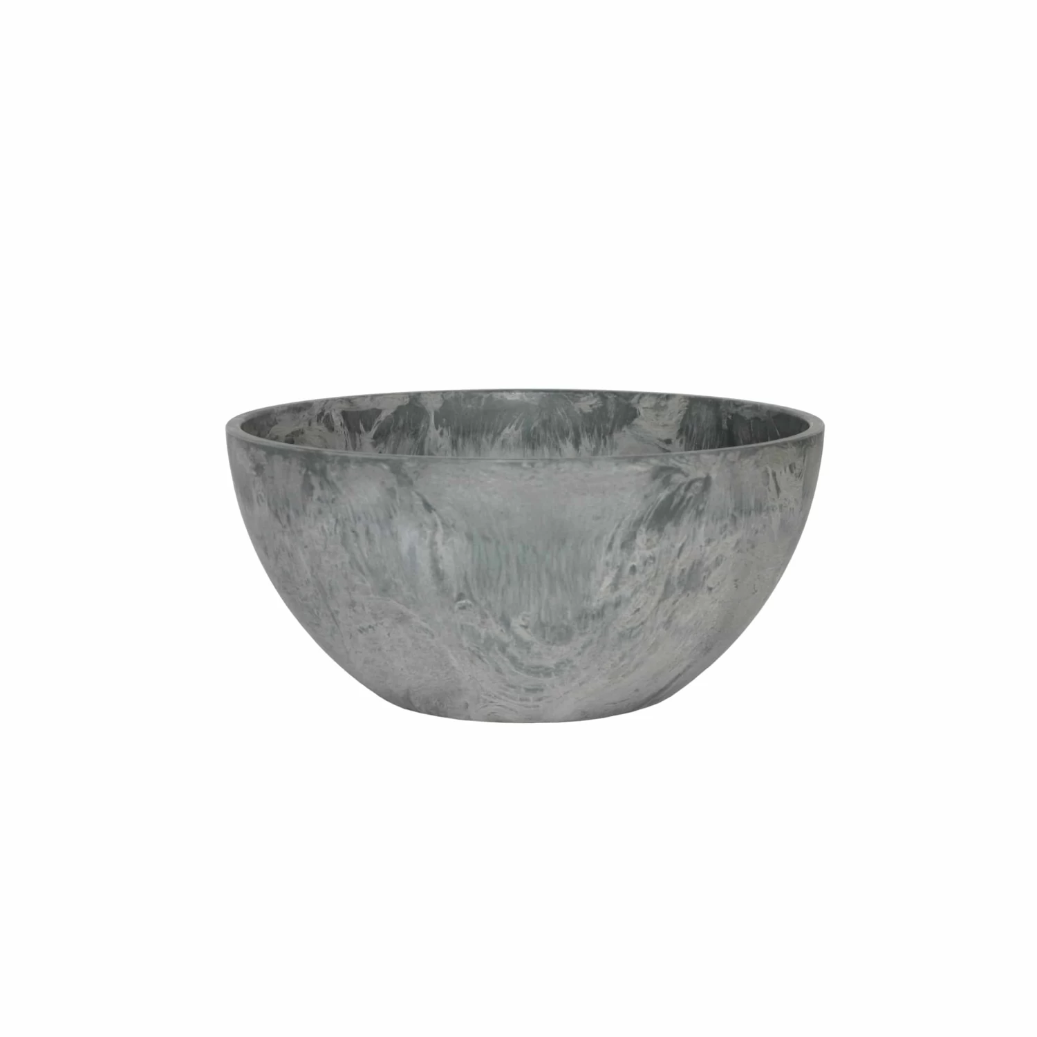 Das Ausgangsmaterial der Blumenschale besteht aus einem Gemisch aus Resinharz (Gießharz) und recyceltem Kunststoff. Um die Kunstmarmor-Optik zu erhalten ist dem Basismaterial Natursteinpulver beigemischt. Hierdurch entsteht das einzigartige Aussehen des Pflanzgefäßes.