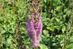 Die Blütenstauden beginnen ihren Reigen ab März mit der leuchtenden Blüte der rosa Bergenien gefolgt von Kaukasus-Vergissmeinnicht und Tränendem Herz. Im Laufe der Sommermonate erblühen Waldglockenblumen, Prachtspieren, Ziest, Schlangenkopf und Astern. Duftig-zart steigen im Juli die lila Blütenwolken der Wiesenraute aus dem Beet auf und bilden einen traumhaft schönen Schleier. Ab August bis Oktober beschließen Herbst-Anemonen das Gartenjahr und erfreuen über Wochen mit ihren kräftig rosa Blüten. Natürlich dürfen auch Höhe und Struktur in diesem Beet nicht fehlen. So sorgen der weiße Kerzenknöterich und der stattliche Wald-Geißbart im Hintergrund für nötiges Volumen.