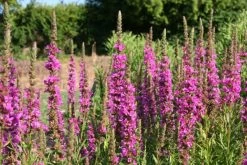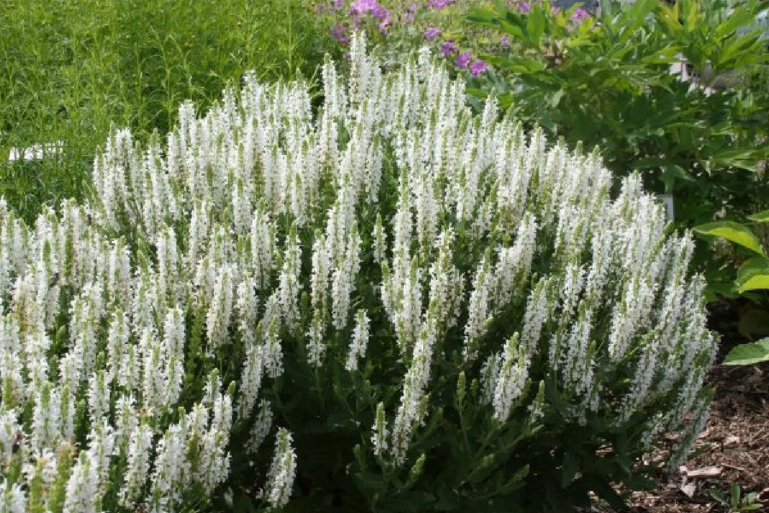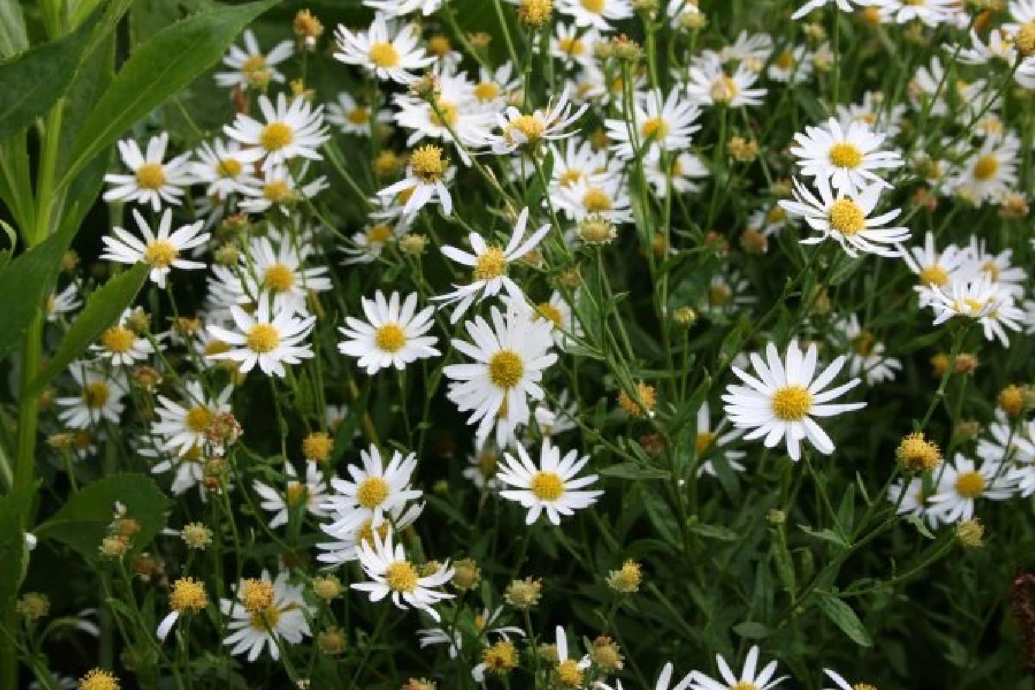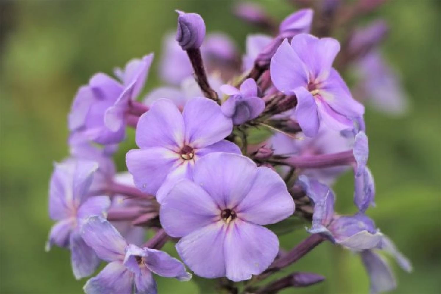 Den Auftakt des Gartenjahres übernehmen Duftveilchen sowie eine Bergenie mit rosa überhauchten Blüten. Kommt der April und Mai reichen sich eine immergrüne Schleifenblume, Sibirische Wieseniris, weißer Ziersalbei, eine alpine Witwenblume sowie eine imposante, rosa-gefüllt blühende Staudenpfingstrose den Staffelstab weiter. Nicht sattsehen kann man sich im Sommer, wenn eine wunderbar duftende historische Rose, Prachtstorchschnabel, eine großblütige Glockenblume, zarte Schönaster, Braunelle, Blutweiderich und duftende Flammenblumen ihr Blütenfeuerwerk entzünden. Filigraner Wiesenknopf bereichert zusätzlich mit weinroten Knöpfchen-Blüten das Bild. Im Herbst ziehen eine Myrtenaster sowie eine kleine Kissenaster noch einmal alle Register, um uns mit letzter Farbe zu beschenken.