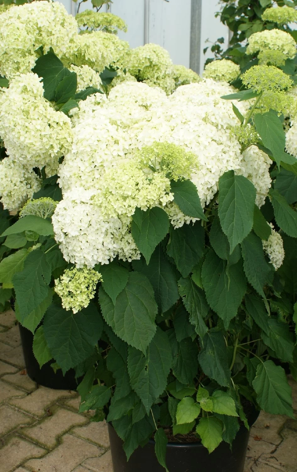 Mit einer Wuchshöhe von gut 1,50 Metern lässt sich ‚Annabelle‘ problemlos in die Staudenrabatte integrieren. Ihre riesigen, anfangs frischgrün überhauchten Blütenbälle färben sich allmählich weiß aus und verleihen diesem imposanten Gehölz eine Aura opulenter Eleganz.