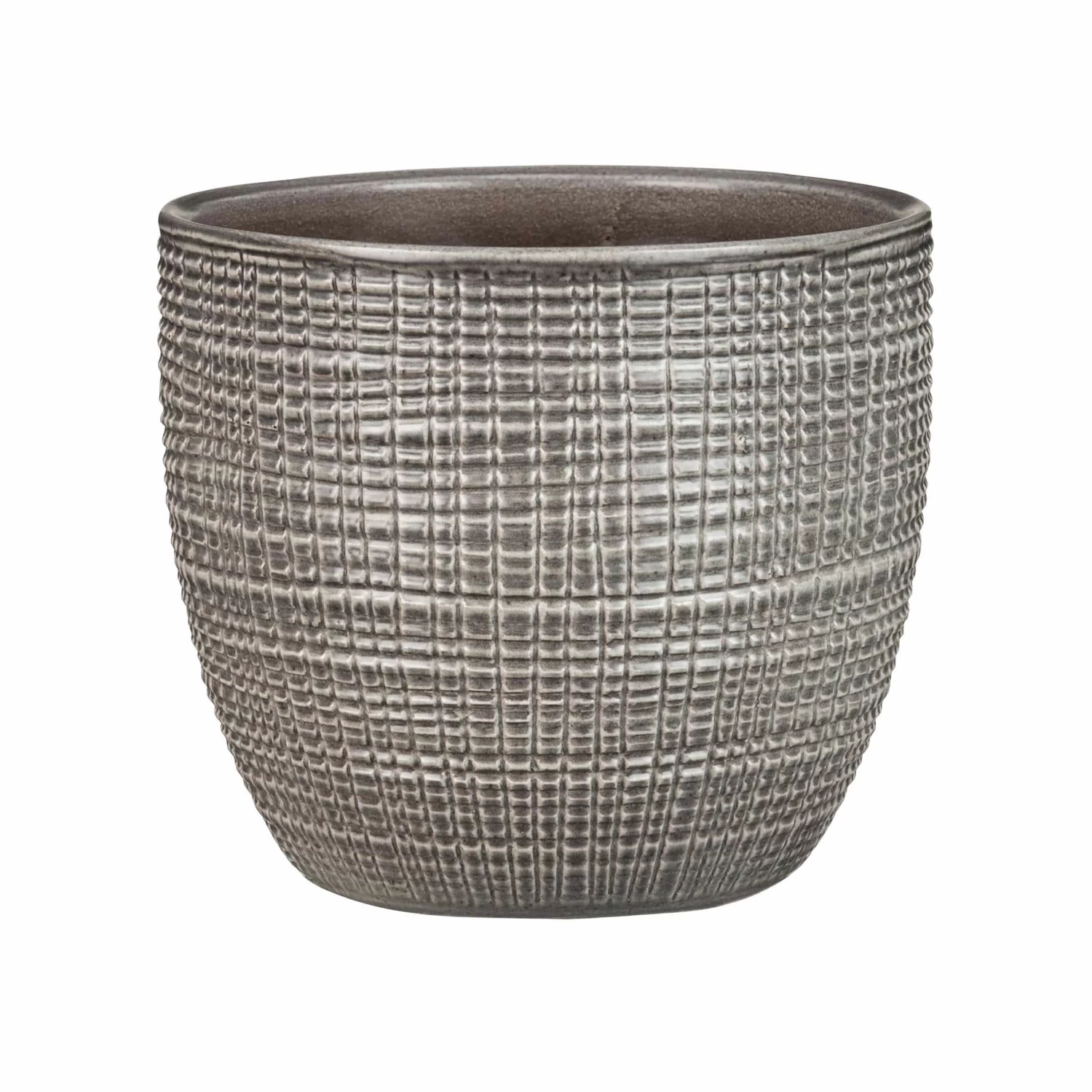 Der dickwandige Blumentopf in handwerklicher Machart passt zu vielen zarten und kleinblättrigen Zimmerpflanzen. Feine, an Textilien angelehnte Vertiefungen verleihen jedem Übertopf einen individuellen Charakter.