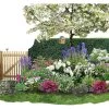 Im Frühling startet das Beetpaket mit einer großblättrigen, rosablühenden Bergenie, gefolgt von Gold-Wolfsmilch mit limettengrünen Blüten. Im Mai reckt eine sibirische Wieseniris ihre bezaubernden violetten Blüten über einen grasartigen Blattschopf, begleitet von duftendem Teppich-Phlox. Kommt der Hochsommer leuchten einem gelbes Mädchenauge, hohe Schafgarbe und violette Sommeraster schon von Weitem entgegen. Für zartes Schweben sorgen weiße Prachtkerze und pinke Karthäusernelke. Ab Spätsommer beginnt eine rote Sonnenbraut zu blühen, die rasch von einer kleinblütigen, weißen Myrtenaster Gesellschaft bekommt.