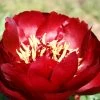 „Inselbrokat“. Große, rote, halbgefüllte Blüte mit weißen und roten Streifen. Mutation von Tayio. In manchen Jahren ist sie gezeichnet, in anderen Jahren einfach rot. Originelle Wirkung, da an einer Pflanze oft unterschiedliche Blüten blühen. Blütezeit: Mitte Mai,