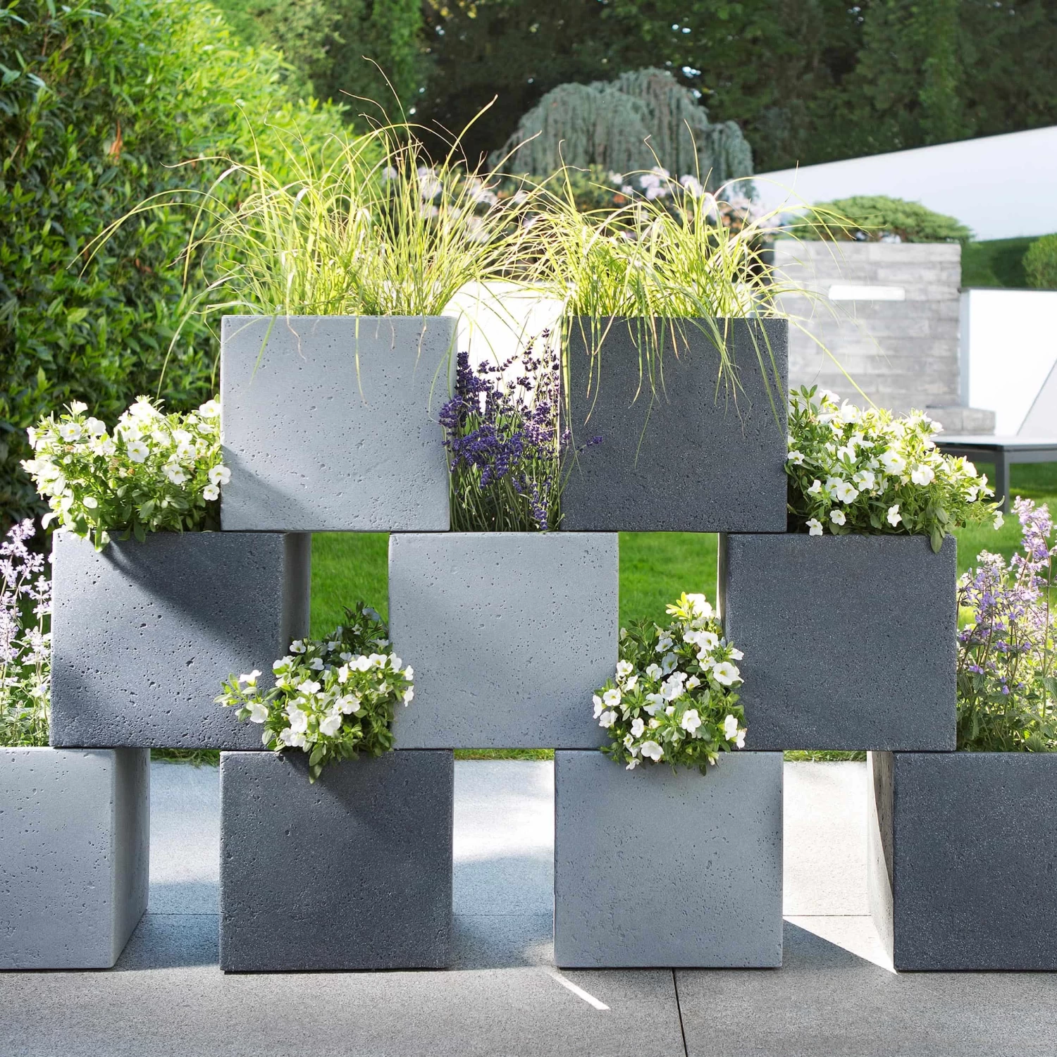 Das C-Cube Pflanzgefäß ist der kreative Allrounder unter den Blumenkübeln. Der quadratische Pflanzkübel ist sowohl einzeln ein Hingucker auf Balkon, Terrasse oder im Garten – oder Du „baust“ ein blühendes Mäuerchen, eine bepflanzte Treppe oder andere beeindruckende Ideen aus den robusten, dickwandigen Gefäßen.