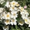 Die Rose ‚Bobbie James‘ hat kleine crémeweiße, halb gefüllte Blüten mit intensivem Duft.
