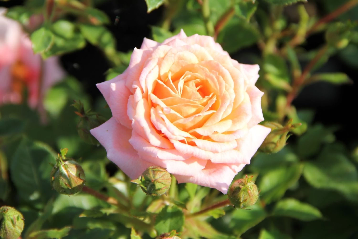 Als Band zur Wegbegleitung gepflanzt oder auf der terrasse in Pflanzgefäßen, die Patiorose ‚Peach Clementine‘ verströmt überall ihren warm-mediterranen Charme. Besonders hübsch sieht sie mit lilablau- oder weißblühenden Begleitern wie Katzenminze, Ziersalbei oder Prachtkerze aus. Auch Ziergräser wie Federgras oder kleineres Lampenputzergras passen perfekt zu ihr.