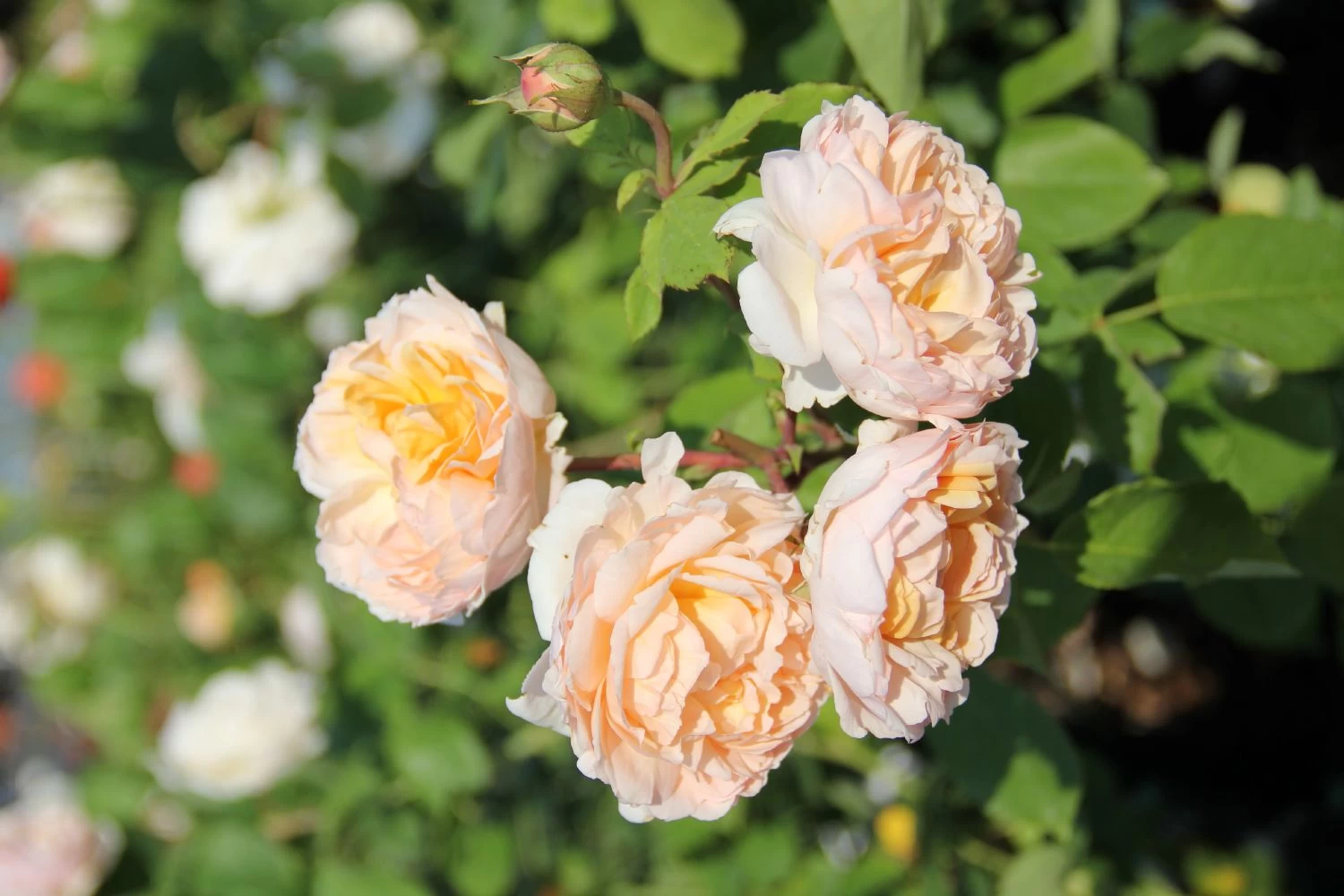 Die Rose ‚The Lady Gardener‘ besticht mit apricotfarbenen Blüten und intensivem Teerosenduft.