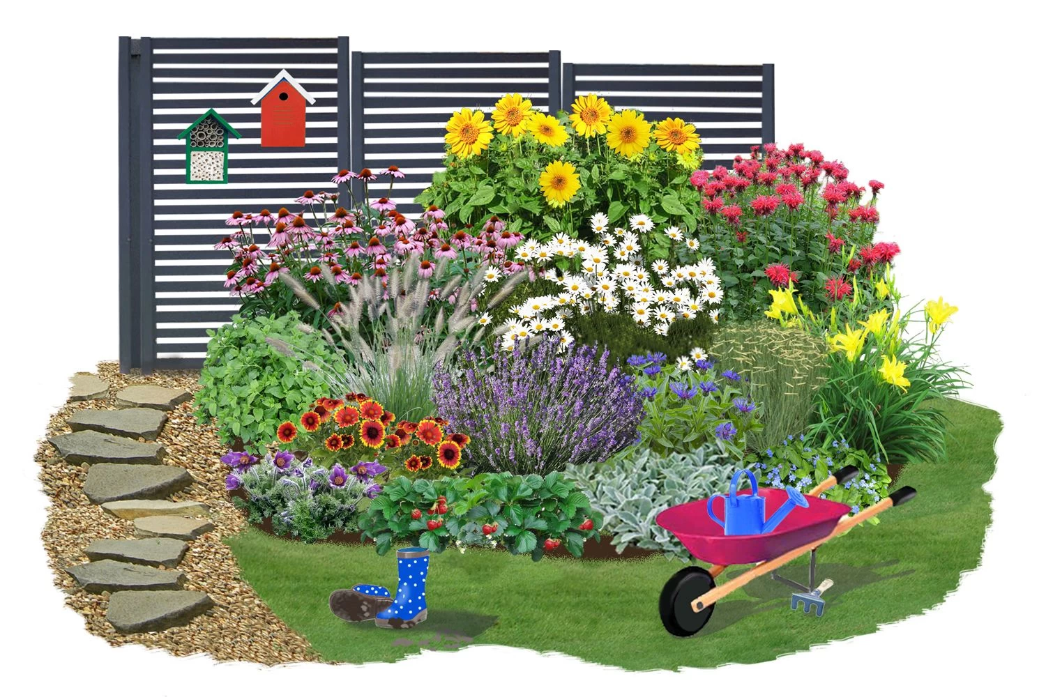 Ob essbar, duftend, als Schnittblume geeignet oder anderweitig kurios, die Pflanzen in diesem kunterbunten Beetchen lassen keinen Kinderwunsch offen.